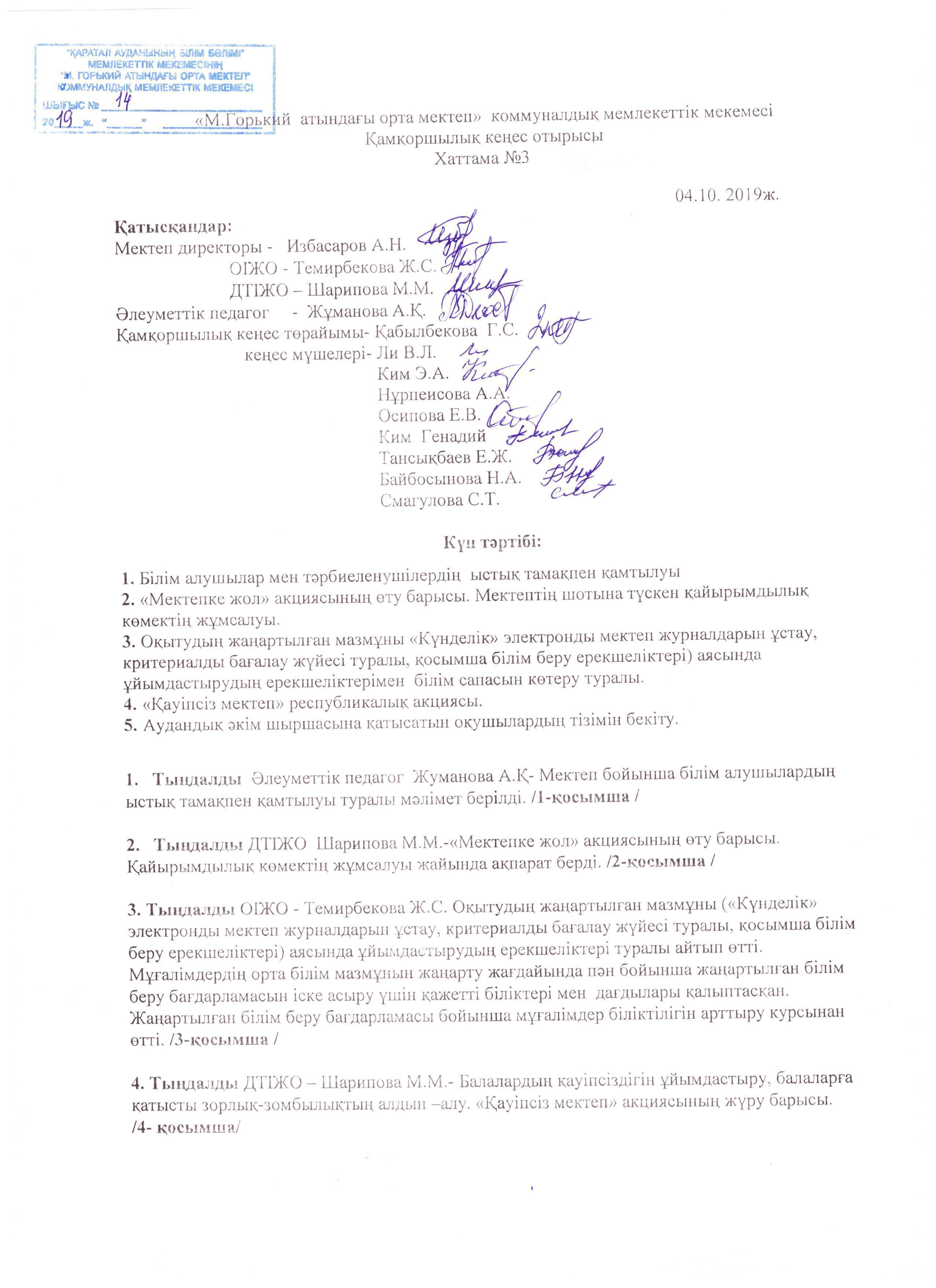 Board of Trustees отырысы №3 » М.Горкий атындағы орта мектеп