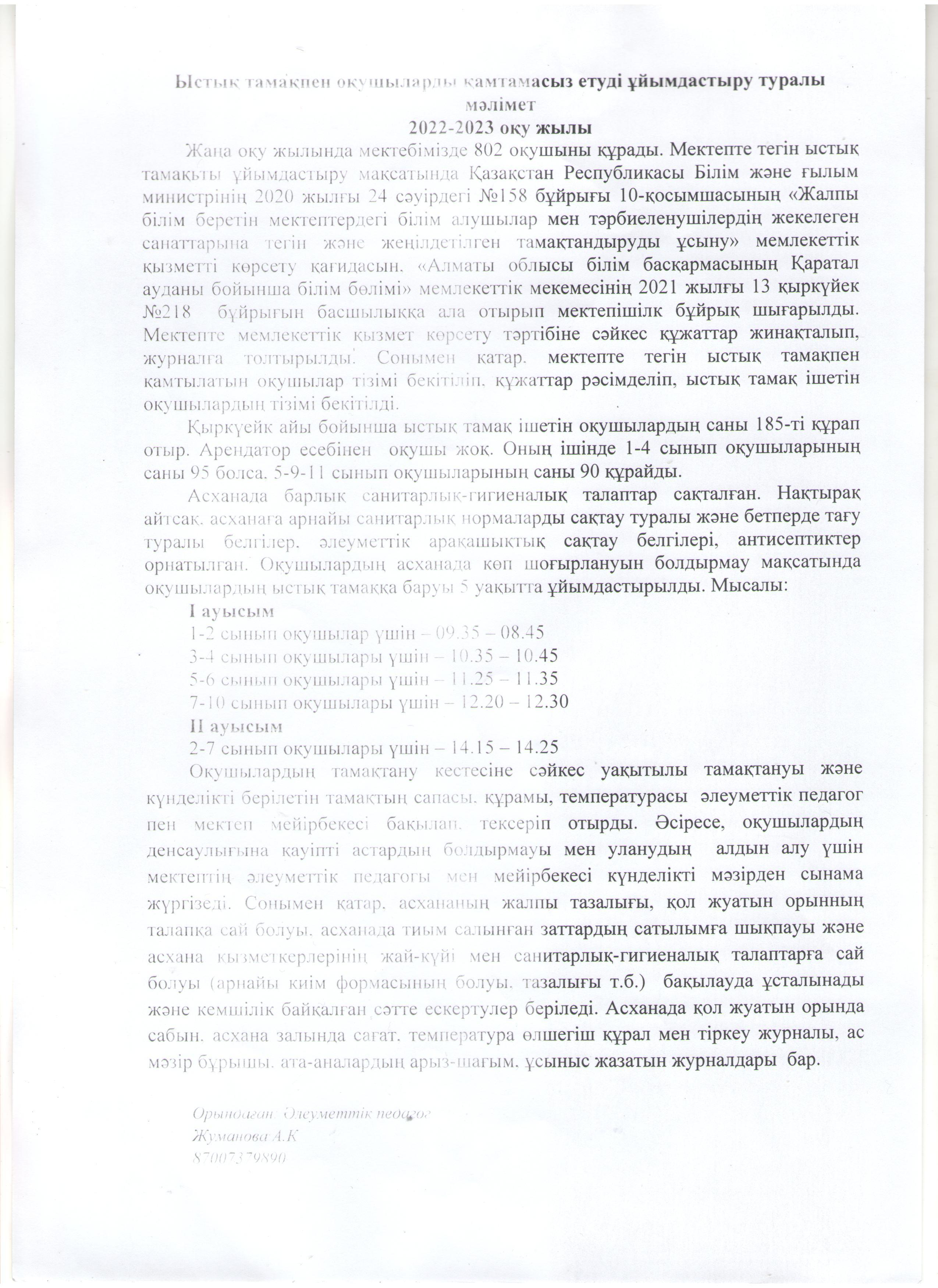 Ыстық тамақпен ұйымдастыру » М.Горкий атындағы орта мектеп